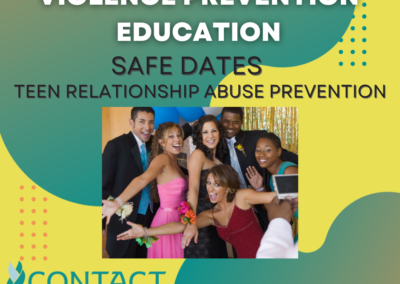 CONTACT offers “Safe Dates” curriculum for grades 8-12. This great curriculum teaches teens how to have healthy relationships – this evidence-based program helps teens recognize the difference between caring, supportive relationships and controlling, manipulative, or abusive relationships. It is during the critical preteen and teen years that young people begin to learn the skills needed to create and foster positive relationships.